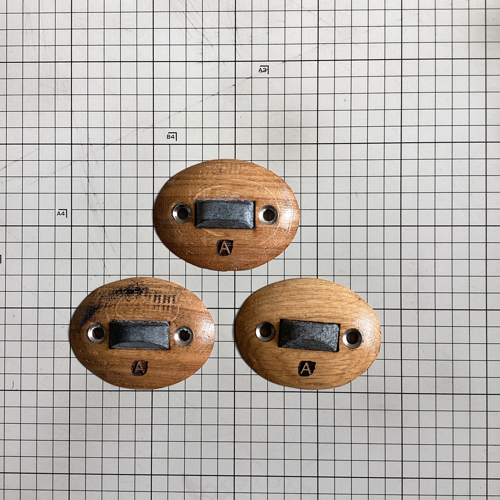 当社で使用歴のある、「Nature Climbing製ホールド」 フット3個セット。現物になります。当社の基準では、Bランク。使用歴あり。通常の営業ジムにおいて並。よくある外観レベル。